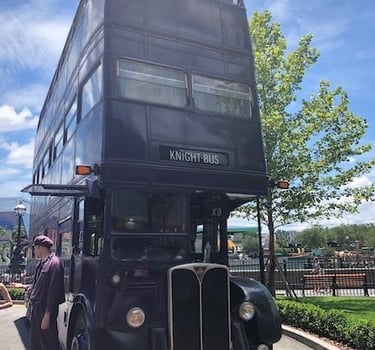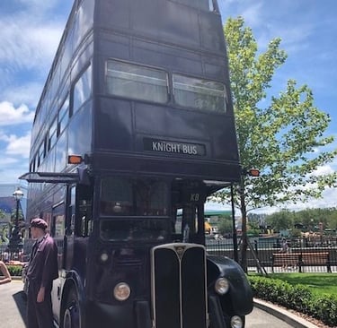 Once you are done exploring Diagon Alley, you can step right outside to find the purple Knight Bus right outside or you can head over to Hogsmeade if you have a park-to-park ticket. If you book your vacation with me, we can go into more of the many benefits of a Park-to-Park ticket. One of the best benefits of a park-to-park ticket is the ability to go on the Hogwarts Express. Before you board the Hogwarts Express, you will go through a passageway and when you stare straight on at the passageway it looks normal, but from the side angle when people walk through, it looks like they are walking through a brick wall. (In the books and movies in order to board the Hogwarts Express, you have to get to platform 9 ¾; you get there by walking through the brick pillar between platforms 9 and 10. This is just another fun easter egg that not a lot of people know about.