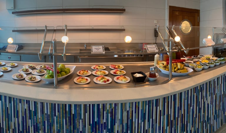 Additionally, the Spa Café serves breakfast options that accommodate to gluten free and vegetarian sailors.