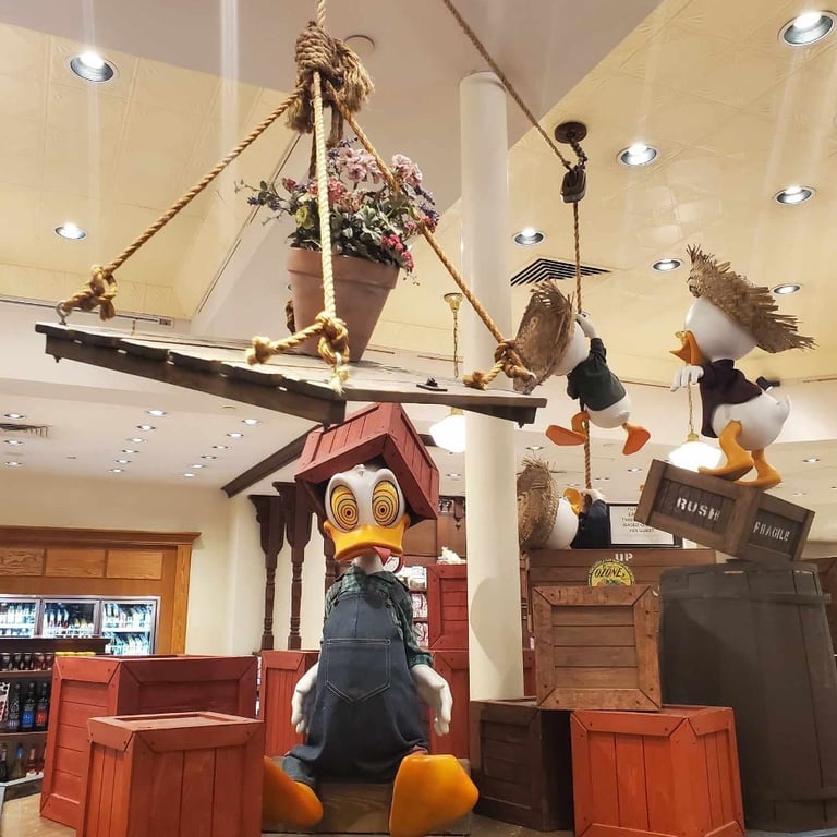 Additionally, the resort is home to a sit-down dining location, Boatwright’s Dining Hall, and one of my favorite quick service dining options, Riverside Mill Food Court. The resort also has an amazing gift shop near the lobby, Fulton’s General Store, with adorable animatronics in it! Fulton’s General Store will have your iconic Disney merchandise, some of which you can find in the parks, as well as souvenirs related to New Orleans and Tiana. This gift shop is quite large and decorated with perfect Disney theming. It’s worth a walkthrough even if you aren’t planning on buying anything.