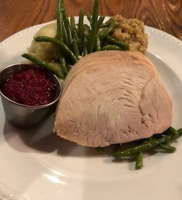 When I recently visited, I ordered “Our Tavern Keeper’s Favorite” which has pot roast, mashed potatoes, and seasonal vegetables. I choose The Pilgrim's Feast which has carved turkey breast with mashed potatoes, green beans, cranberry sauce, herb stuffing, and gravy.